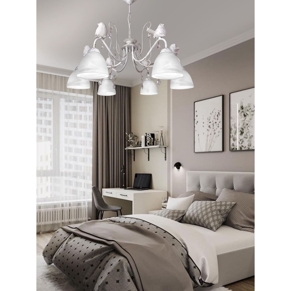 Эта люстра выполнена в белом цвете с патиной золота, что придаёт ей утончённый и роскошный вид. Элементы дизайна, такие как изящные птички и хрустальные подвески, создают ощущение лёгкости и воздушности. Стиль «прованс» идеально вписывается в интерьеры, оформленные в романтическом и уютном ключе, а классический стиль добавляет нотки традиционной элегантности.
