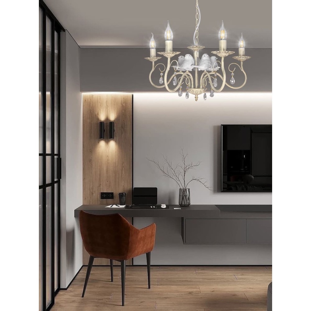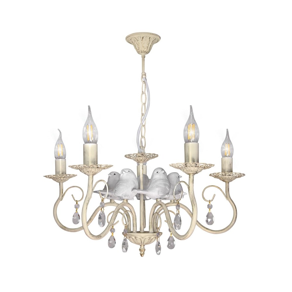 Люстра с птичками S1293-5 отличается простотой установки. Она легко собирается: сначала прикручиваются птички на рога люстры, затем рога-к центру люстру и крепится люстра на крюк, что делает процесс монтажа быстрым и комфортным. Возможность укорочения цепи позволяет адаптировать её под высоту вашего помещения, что обеспечивает максимальную гибкость в дизайне.